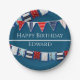 Diseño de Bunting Nautical con veleros, anclas, letras difusas y rayas en los colores rojo, blanco y azul, típicos de la vida náutica y costera y temas marítimos. Personalizar a su gusto (incluso borrar o cambiar texto).