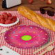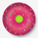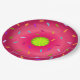 Buñuelo delicioso rosado en una placa. ¡Los dulces en ella serán incluso más dulces!