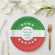 Buon Natale Navidades Fiesta Bandera italiana y placa de papel de nombre muestra el saludo navideño que se escucha comúnmente en Italia junto con el nombre de la familia anfitriona, todo con un fondo en los colores de la bandera de Italia, el Tricolore. Simplemente agregue su nombre y el año o cualquier otro mensaje de vacaciones que desee añadir para personalizar este accesorio festivo, los huéspedes tendrán que mantener todos los platos tradicionales del País Antiguo que estará sirviendo! Si queda algo, salve la víspera de Año Nuevo o dale a los invitados que se lleven a casa como un placer.
