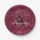 Plato De Papel Burgundy Morple Sparkle Monograma Cumpleaños