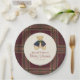 Celebrate your little one's arrival with these charming teddy bear baby shower paper plates. Featuring a vintage-inspired teddy bear adorned with a classic plaid cape, set against a rustic plaid background in deep burgundy and warm earth tones. These plates add a touch of cozy elegance to any baby shower, creating a memorable setting for guests. Perfect for serving treats and cake at a woodland or traditional baby shower theme. Make your baby shower decorations truly special with these adorable and functional paper plates.