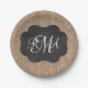 Plato De Papel Burlap Chalkboard Look Triple Guión Monogramado