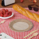 Platos rústicos de papel para el fiesta de boda del país o para reuniones familiares en la casa de campo.