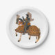 Un caballero medieval a caballo en plena panoplia ceremonial para los amantes de la historia y los reactores