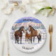 Plato De Papel Caballos Appaloosa De La Bahía Marrón En Nieve