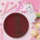 Platos de papel de cuadros de búfalo con patrón a cuadros rojos y negros. Puedes personalizar fácilmente estos platos de papel rústicos boho de cuadros de búfalo leñador agregando el texto de tu elección.