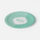 Placas de papel verde de menta de dos tonalidades de Moda con un patrón de casaca en rayas verticales. Personalice este diseño contemporáneo a la moda en un tono verde pastel añadiendo el nombre y las iniciales en monograma de la joven de moda.