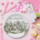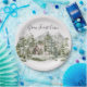 Plato De Papel Cabina acuarela en bosque de pinos verdes