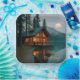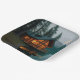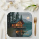 Estos platos de papel cuentan con una rústica casa lacustre con iluminación y reflejos acogedores.