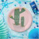 Baby Shower Plates con ilustracion de Cactus en sábanas de quequitos rosas