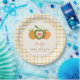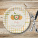 Sirva su celebración con estilo con estos adorables platos de papel para bebé "La Manzana de Nuestro Ojo", con un trío dulce de manzanas blandas verdes y amarillas con un detalle de corazón rojo, enmarcado por un alegre borde de rayas verde y amarillo tipo gingham. Perfecto para un fiesta neutral en cuanto a género, estos platos se pueden personalizar con el nombre y la fecha de ducha de la futura madre, añadiendo un toque de atención a la decoración de la mesa. Diseñadas para coordinar con gusto las invitaciones y los suministros de fiesta a juego, son ideales para una ducha de temática rústica, de casta o de huerto, que combina encanto festivo con comodidad práctica.
