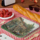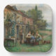 Este diseño presenta un cuadro del artista estadounidense Daniel Ridgway Knight (1839-1924). Muestra a una familia francesa tomando café en el jardín. Una mujer y dos chicas están sentados alrededor de una mesa con tazas delante de ellos. También hay un joven caminando hacia la familia en la mesa con un poco de café en la mano; va a llenar sus tazas. Las mujeres miembros de la familia están charlando entre ellas de manera contenta. La casa y el jardín son pintorescos y atractivos. Hay un río a lo lejos.