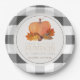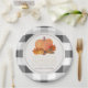 Este lindo plato de papel de cumpleaños neutral de género incluye una calabaza naranja con hojas de otoño en un fondo blanco con cheques de búfalo negro. Personalízalo para tus necesidades. Puedes encontrar productos coincidentes en mi tienda.
