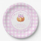 Plato De Papel Calabaza con arco rosado en una jaula de bebé duch