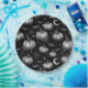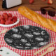 Una placa de papel con motivos de Halloween en blanco y negro con calabazas intrincadamente esbozadas, murciélagos en picada, telarañas detalladas y acentos celestes como estrellas y luna creciente. El trabajo en línea a mano y los espeluznantes elementos nocturnos crean una estética atemporal y espeluznante perfecta para diseños góticos e inspirados en el otoño.