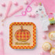 Placa de papel de color rojo y naranja a cuadros de estilo retro groovic. Elegante tipografía retro de tipografía "Feliz Día de Acción de Gracias", con una linda calabaza de yeso y marco de cuadros rojos y naranjas.