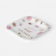 Pequeña Calabaza Autumn Boho Cae Platos Baby Shower florales rosados. Con hermosos diseños de acuarela en la parte delantera y un encantador patrón de calabaza en un fondo blanco. Personalizable fácil para su evento especial. El tema perfecto para cualquier celebración bohemiana de la ducha de bebé de otoño.