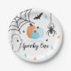 Platos de fiesta de cumpleaños de Halloween. ¡Escandaloso! 1.ª invitación a la fiesta de cumpleaños con calabazas turquesa, estrellas y arañas.