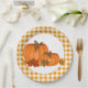 Esta placa de calabazas de otoño presenta una huella de lápiz de color de las calabazas y hojas de otoño.