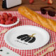 Plato De Papel Calabazas estilizadas en negro, blanco y oro