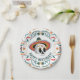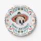 Añade un toque festivo a tu celebración con este diseño de placas de papel con un cráneo de azúcar en un sombrero, rodeado de coloridos acentos florales y un texto de "Cumpleaños Feliz". La audaz combinación de colores verde azulados, rojos y dorados hace que sea perfecta para los cumpleaños temáticos mexicanos, el Día de los Muertos o una fiesta animada. Personalizar fácilmente el texto para hacerlo propio.