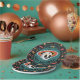 Platos festivos de papel con un cráneo de azúcar con un sombrero colorido, rodeados de detalles de arte folclórico florido y el saludo "Feliz Cumpleaños". Un diseño audaz y único perfecto para cumpleaños temáticos.