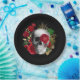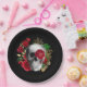Plato De Papel Calavera de gótico con flores rojas y hojas de oro