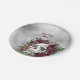 Plato De Papel Calavera y Rosas Borgoña Granate Gris Personalizad