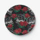 Plato De Papel Calaveras y rosas rojas | Gótico moderno Glam Grun