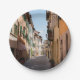 Plato De Papel Calle estrecha con fachadas antiguas en pueblo tos