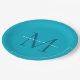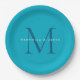 Plato De Papel Calligrafía monogramada Azure Blue Modern Plain