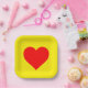 Sencillo corazón rojo cálido sobre fondo amarillo intenso. Idea de decoración de diseño gráfico. Forma estética comúnmente utilizada para representar amor, apoyo, lazos estrechos, amistad y admiración.
