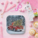 Plato De Papel Camión Retro Rojo Con Árbol De Navidad En Copos De