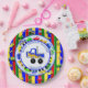 Carros personalizados azules, verdes, amarillos, rojos, tractores, camiones y placas de papel para la fiesta de cumpleaños del niño.