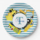 Plato De Papel Camiones de construcción Bandas azules Monograma