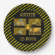 Este diseño consta de cuatro clásicos camiones de construcción de color amarillo intenso dispuestos juntos en un fondo marrón y negro. Incluye otros elementos de construcción como barandillas de guardia y conos de tráfico y franjas de tráfico negras y amarillas. Te tenemos cubierto para un fiesta temático de camiones de construcción: suministros, decoración, deliciosos dulces y significativos regalos personalizados!