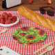 Plato De Papel Camionetas rojas y verdes en verde lima