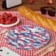 Plato De Papel Camuflaje rojo blanco y azul