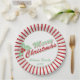 Decoren a sus Navidades fiestas con estos platos de papel de personalizable con un borde de rayas de caramelo rojo y verde, hojas y bayas huecas y una "Feliz Navidad" retro en el centro. Personalizar incluyendo el nombre de su familia o fiesta y la fecha.