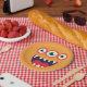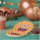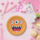 Una cara verde del monstruo con tres ojos grandes y una boca dentuda. ¡Tenga cuidado, o comerá su torta! Diversión para las fiestas de cumpleaños o cualquier fiesta temático del monstruo.