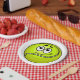 Una divertida pelota de tenis con cara sobre ella. Este diseño parece realmente efectivo en estas placas de papel