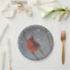Este plato de papel presenta un cardenal encaramado en un matorral de humo en Connecticut en medio de una suave tormenta de nieve. ¡Ideal para fiestas de vacaciones! Elige tu plato de talla.