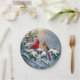 Plato De Papel Cardenales rojos y Holly en la nieve