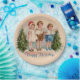 Placas de papel con una vintage escena navideña de niños que se encargan de hacer una gran decoración de fiestas.