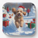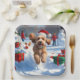 Plato De Papel Carrera de Cockapoo en Nieve con Gorra de Navidade