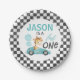Plato De Papel Carreras Azul Coche Girafa Primer Cumpleaños