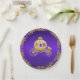 Platos de papel de carruaje real de princesa morada y dorada con un hermoso carro de oro sobre un rico fondo morado y dorado. Puede personalizar estas placas de papel color púrpura y dorado para su evento agregando texto en el estilo de letra y color de su elección. Puede mover y cambiar el tamaño del carro según sea necesario.