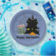 ¡En Venta! ¿Es un truco o un trato? Entre en el espíritu de Halloween con estos platos de casa embrujada. Parte del conjunto de Fiesta de Casa Embrujada, este diseño presenta una casa embrujada con un letrero de se vende, escondido entre las malezas. En el fondo hay una telaraña gris y el texto dice Feliz Halloween.