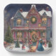 Plato De Papel Casa victoriana, damas, niños en Navidades