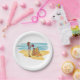 Un niño divirtiéndose construyendo un castillo de arena. Este diseño se ve realmente efectivo en estas placas de papel